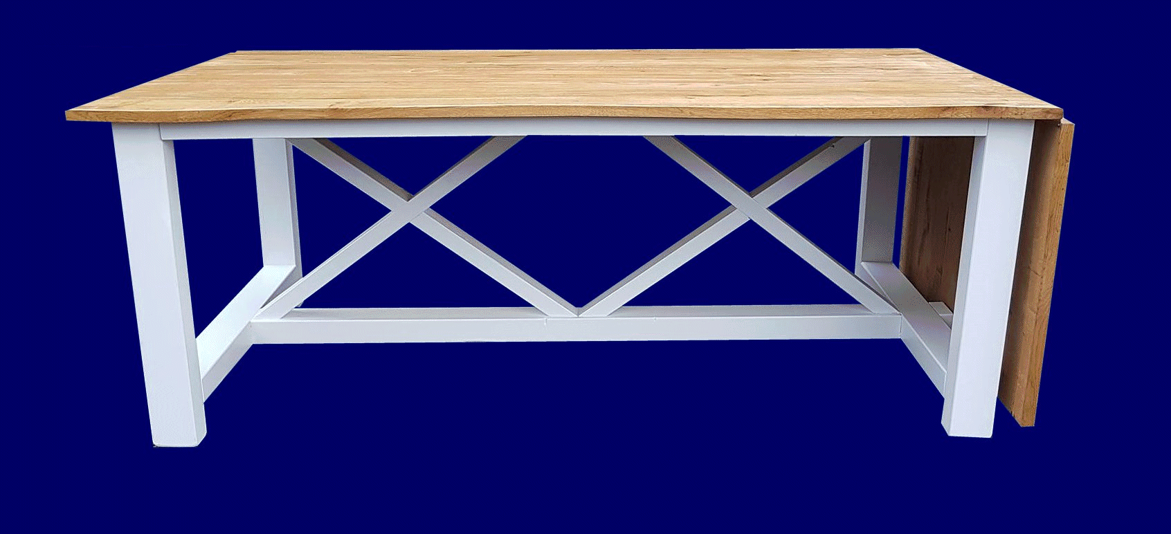 110 x 200 x 77cm met klapblad Ca 65 cm met losse poot
